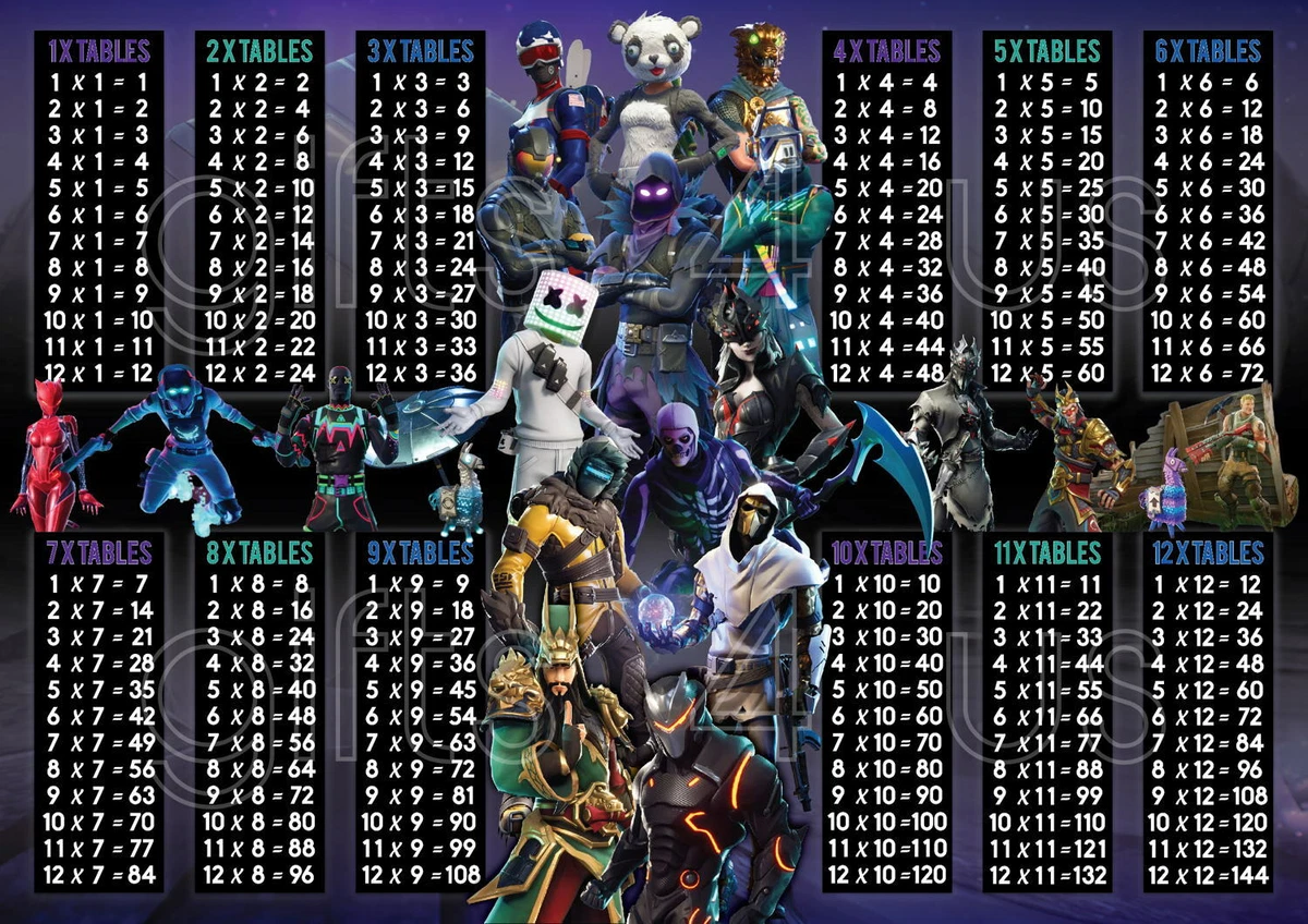 Frozen 2 / Fortnite Times Tables Home Schooling Maths Poster